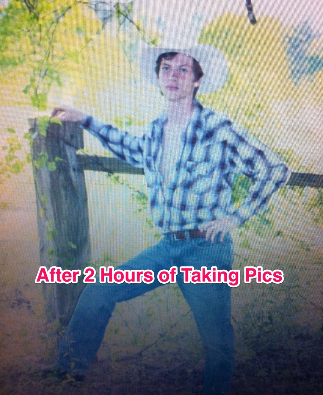 Jack has made significant strides in modeling. I gotta give him his due. But after 2 hours of Senior pictures we look up and notice Jack is striking the mother of all Harlequinn Romance Novel Cover poses. Pearl snap buttons unsnapped and face seriously funny. There is something so primal about humor. It is the language of choice in our family and Jack is a master linguist at it.