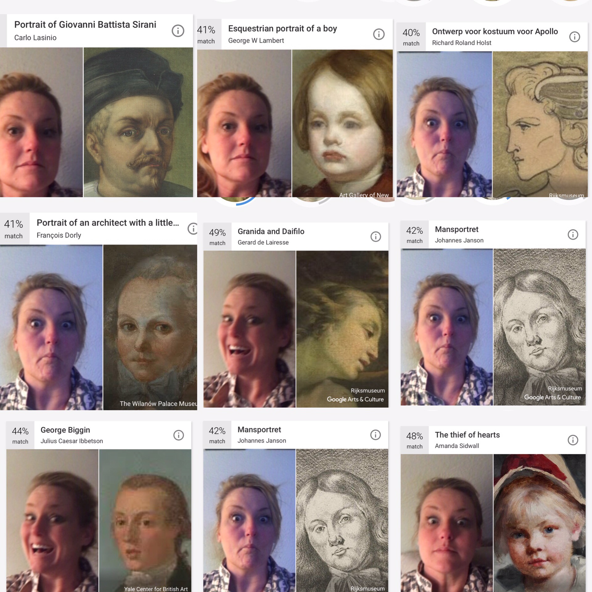 2018? Well, that’s a different story. With my endless storage of photographs which I see instantly and do not have to pay for, I may over-document a tiny amount, perhaps. I am most happy behind the lens taking pictures of others. When not taking wide-mouthed selfies.  So when Jack told me about Google’s Arts and Culture App which, among thousands of other useful aspects has the “Is Your Portrait in a Museum?” Activity, I was curious. He said he’d take my picture and instantly see which historical painting subject my face resembled. I was down.